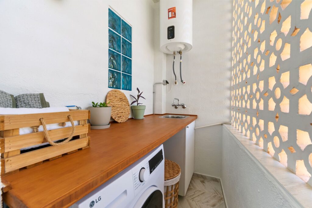 - pračka, sušák na prádlo, žehlička